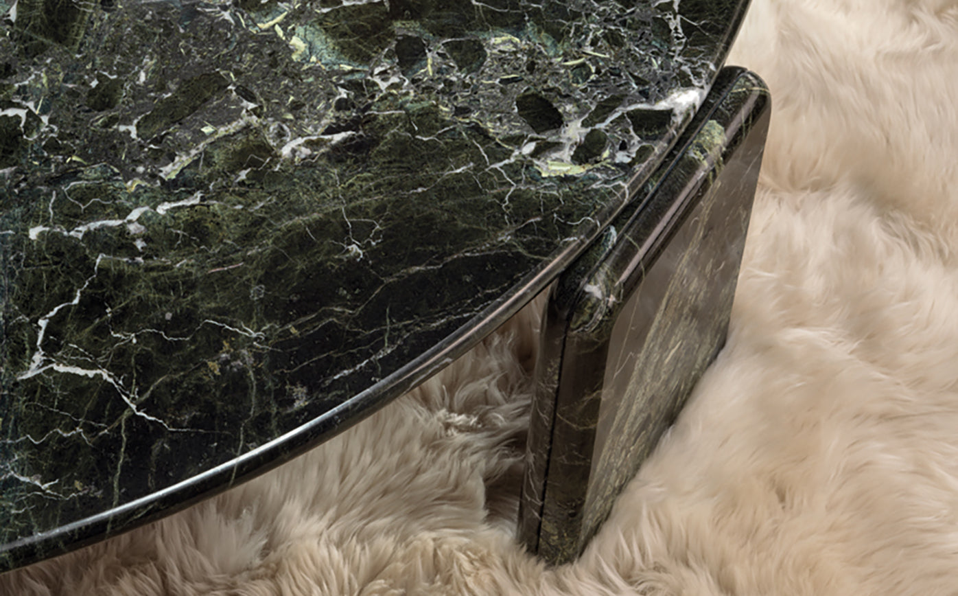 A luxurious round table with a top and base made entirely of natural Italian marble, with multiple options according to your choice.