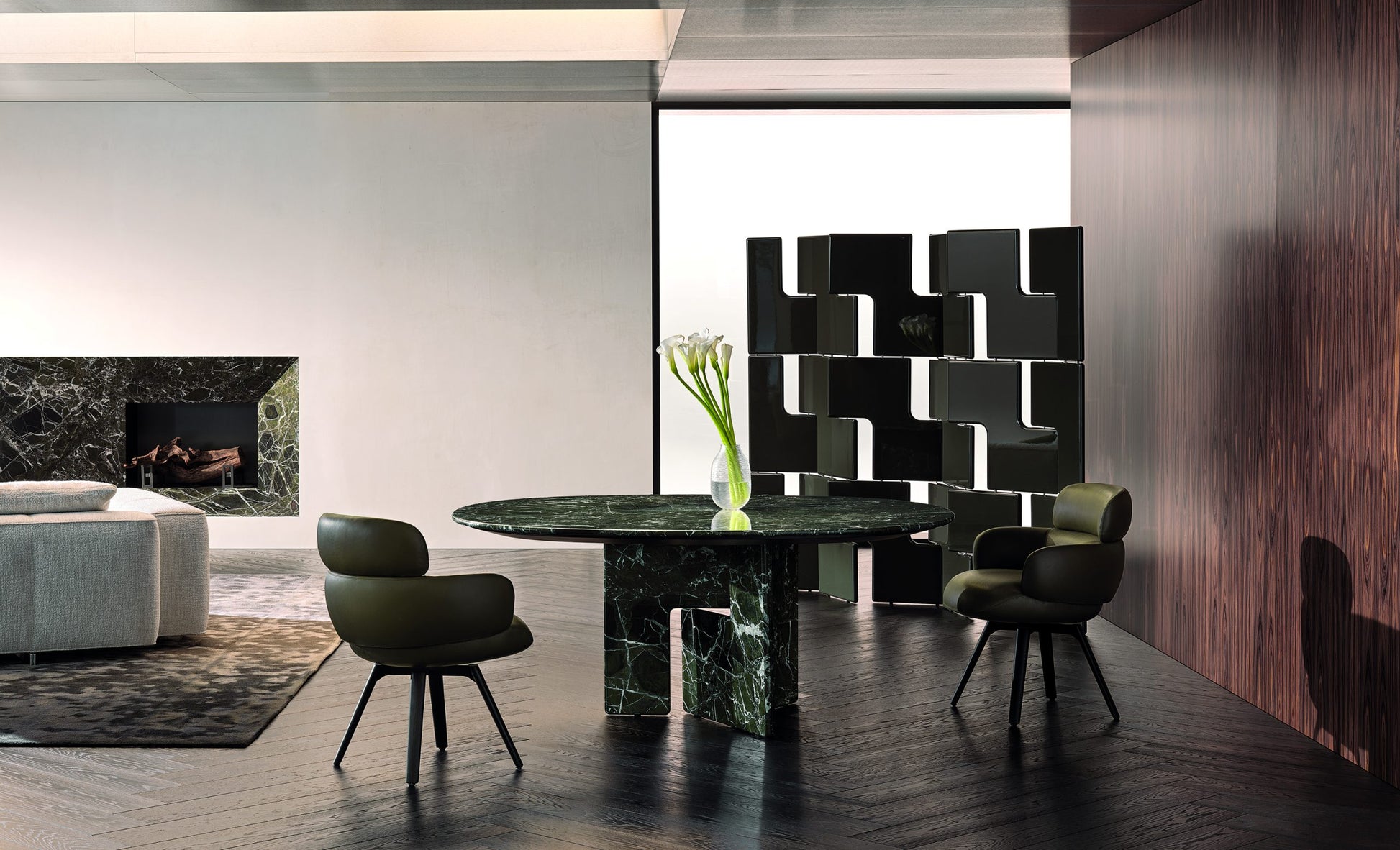A round table with a smooth surface and a modern design made of unique and high-quality Italian natural marble with multiple options of marble types according to your choice.