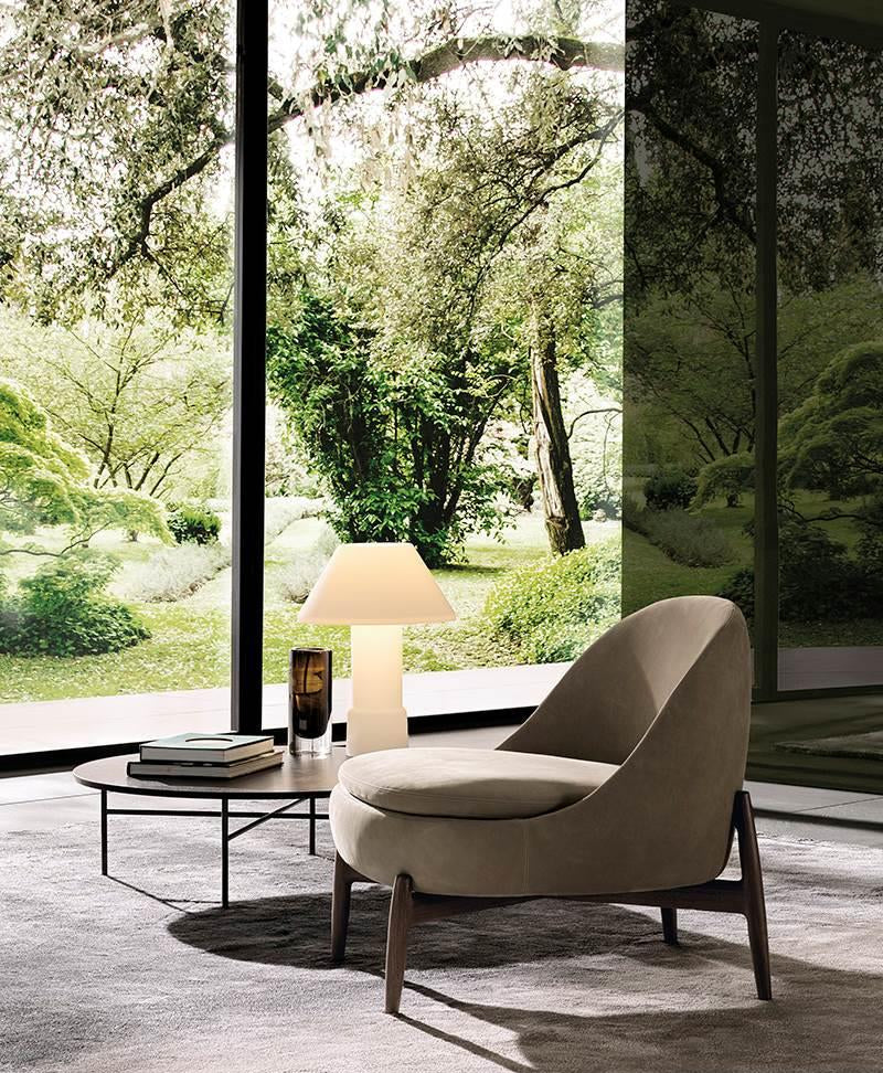 It is upholstered in high-quality linen, padded with high-density foam or high-quality microfiber leather. The base is sturdy and made of high-quality materials.