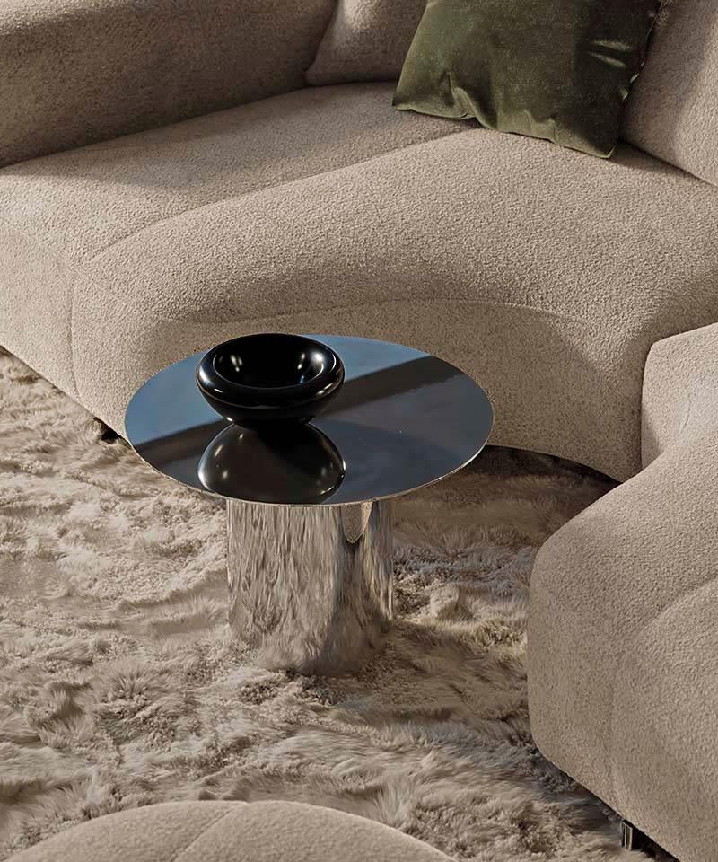 طاولة سطحها دائري الشكل مصنوعة بشكل كامل من الستانلس ستيل المقاوم لصدا بالوان مختلفة والقاعدة اسطوانية متينة توفر دعم متساوي لطاولة