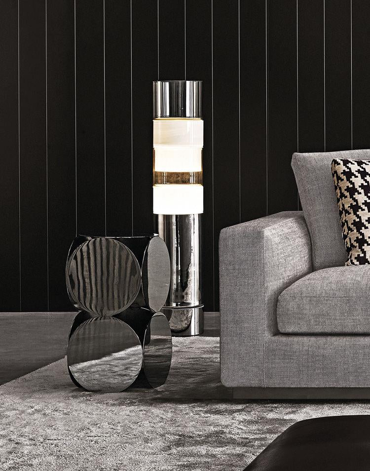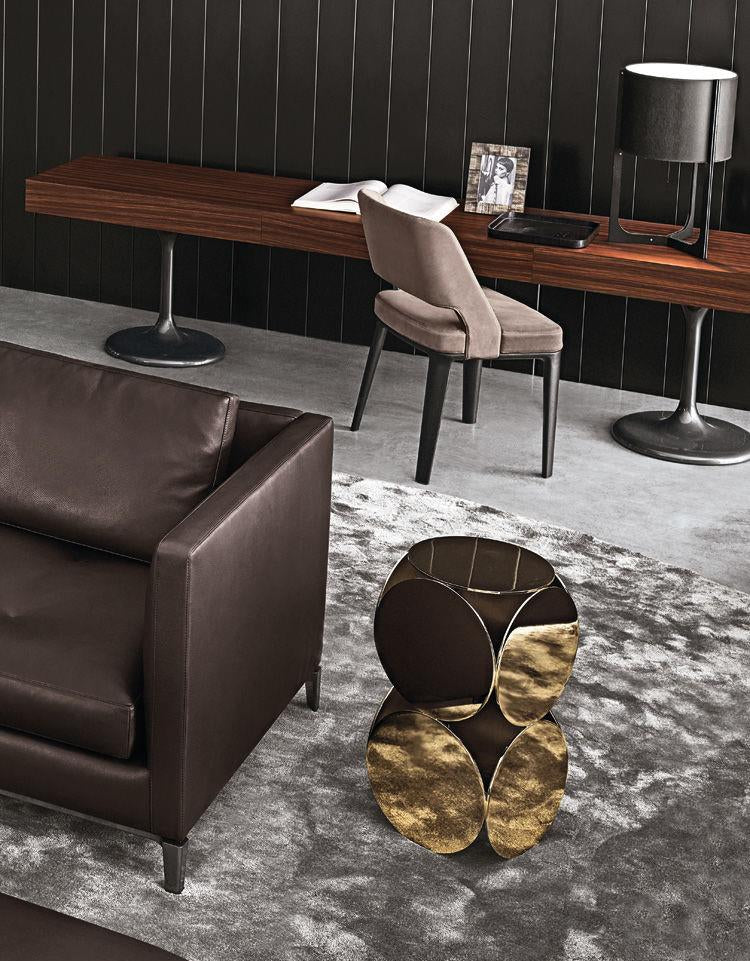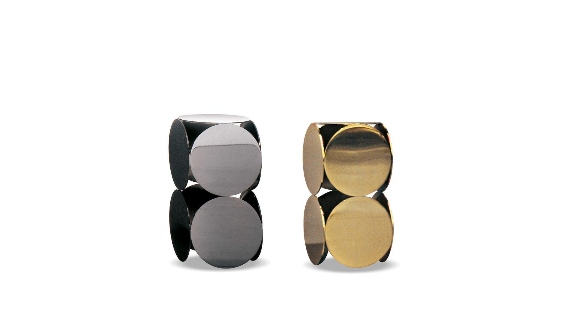 طاولة تصميمها مكعب بدوائر مصنوعة بشكل كامل من الستانلس ستيل المقاوم لصدا بلون الذهبي والون الرمادي