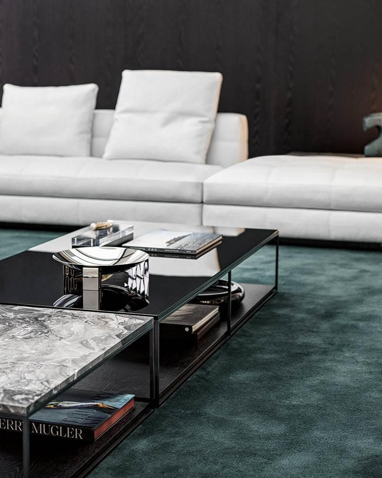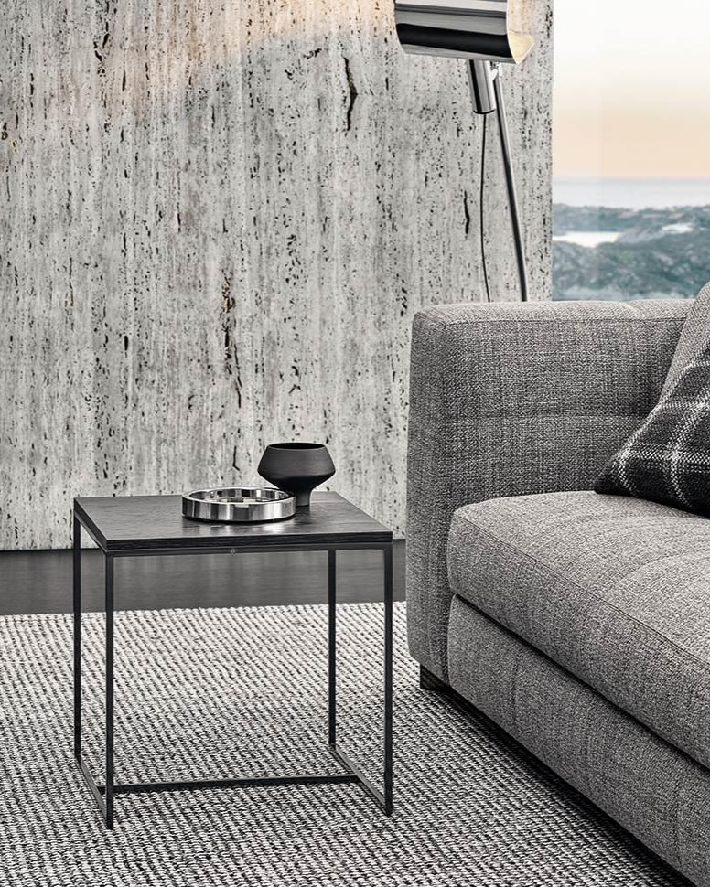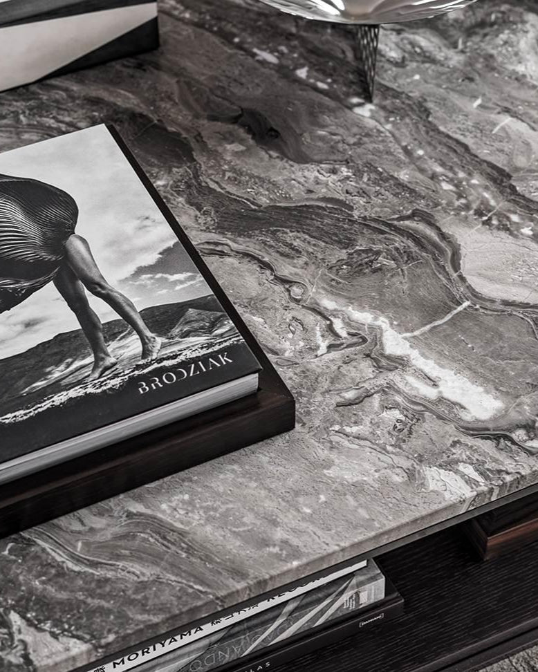 طاولة بقياسات مختلفة السطح من الرخام الايطالي الطبيعي او الخشب الطبيعي بقاعدة من الخشب الصلب و إطار من الستانلس ستيل المقاوم لصدا مصممة بدقة مما يمنح الطاولة ثباتا ومتانة بلون برونزي مصقول