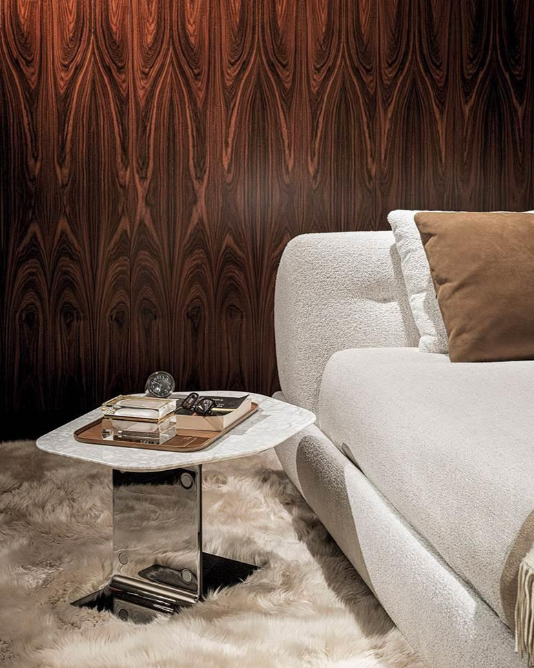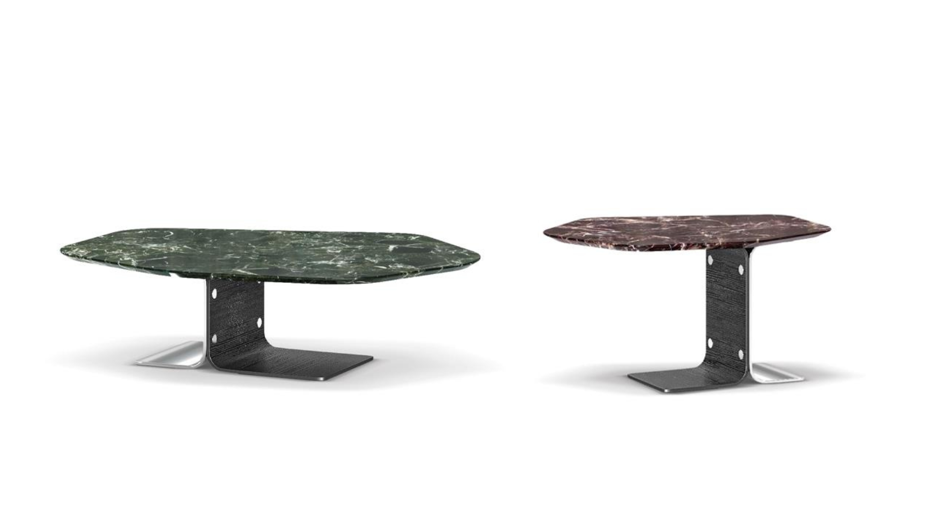 طاولات باكثر من قياس سطحها سداسي مصنوعة من رخام طبيعي إيطالي عالي الجودة مع خيارات متعددة من انواع الرخام حسب اختيارك والأرجل جزء من الستانلس ستيل المقاوم لصدا بلون كروم لامع وجزء من خشب الدردار الطبيعي