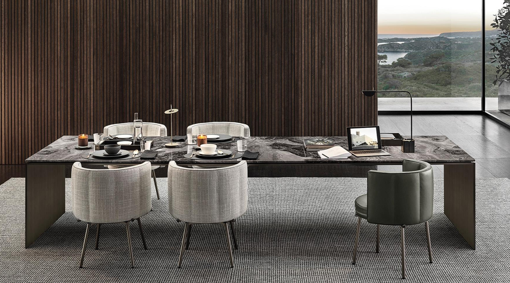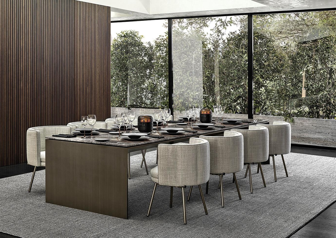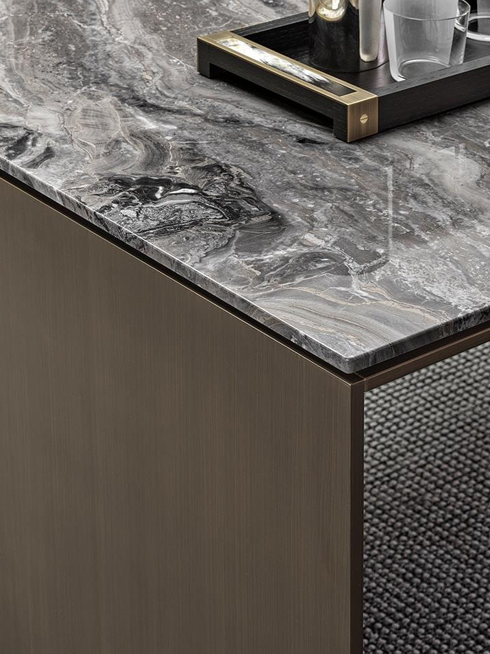 طاولة مستطيلة بسطح أملس بتصميم أنيق مصنوعة من رخام طبيعي إيطالي عالي الجودة مع خيارات متعددة من انواع الرخام حسب اختيارك وقاعدة توفر ثبات ودعم قوي مصنوعة من الستانلس ستيل المقاوم للصدأ بلون البرونزي المصقول