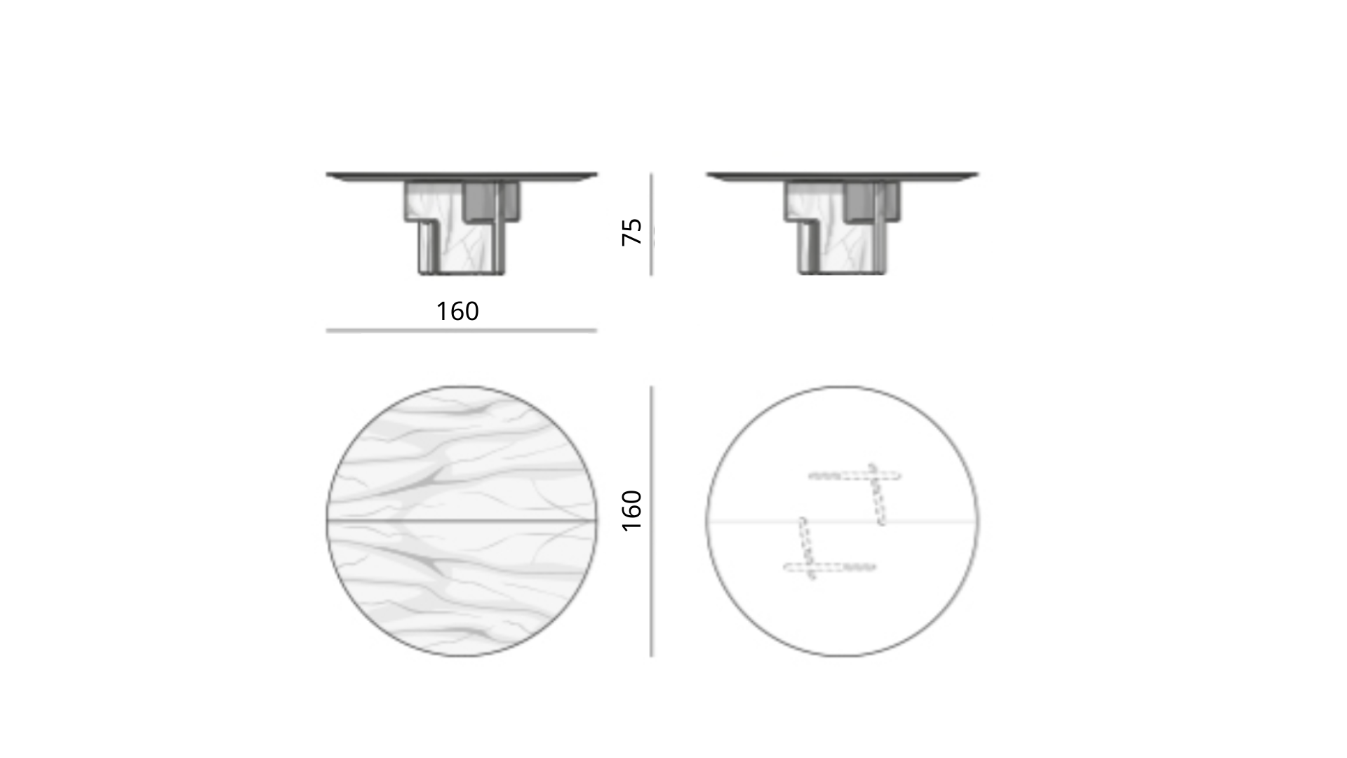 طاولة دائرية بسطح املس بتصميم حديث مصنوعة من رخام طبيعي إيطالي فريد و عالي الجودة مع خيارات متعددة من انواع الرخام حسب اختيارك و قاعدة بتصميم متداخل من الرخام توفر ثبات ودعم قوي وطابع انيق