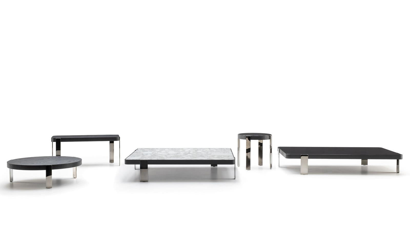 مجموعة طاولات قهوة بتصميمات هندسية متنوعة تشمل الأشكال الدائرية والمستطيلة