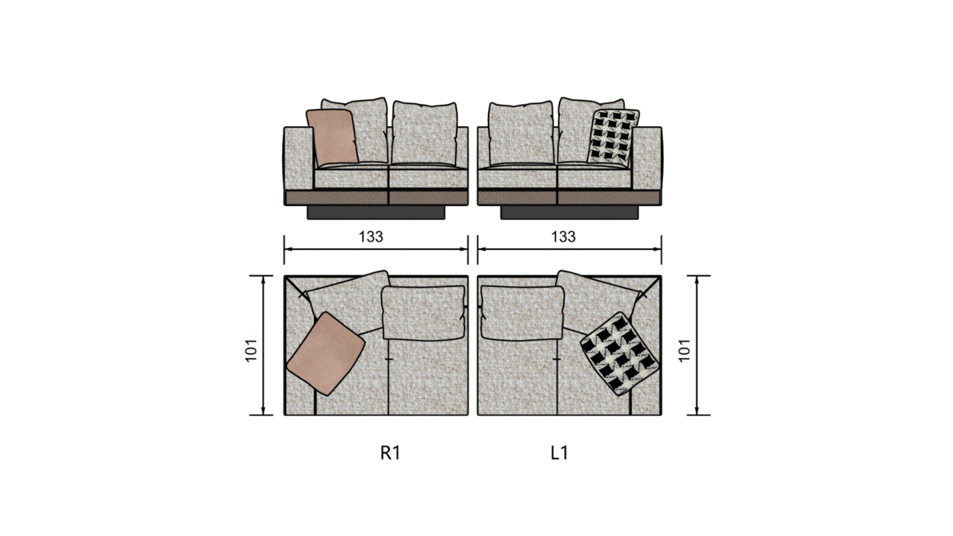كنب بقياسات متعددة بتصميم عصري، الإطار مصنوع من خشب طبيعي من البتولا الروسي مع خشب الصنوبر