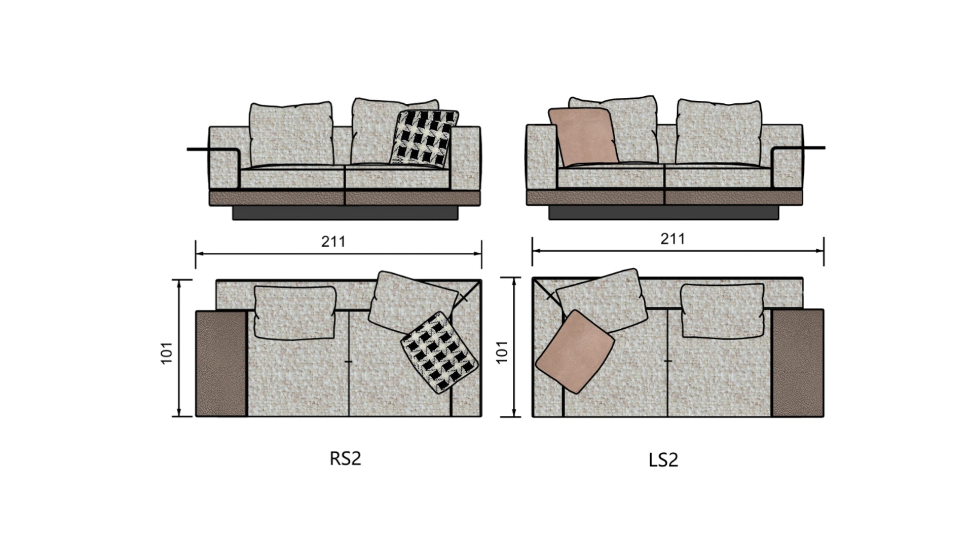 كنب بقياسات متعددة بتصميم عصري، الإطار مصنوع من خشب طبيعي من البتولا الروسي مع خشب الصنوبر