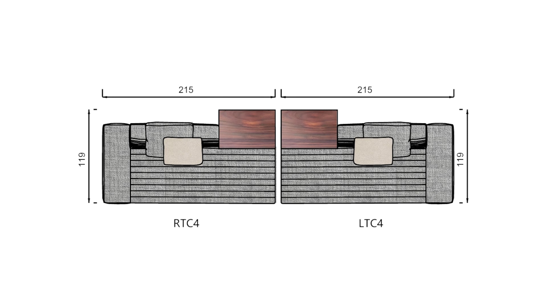 كنب لوسنت- زاوية بذراع عريض مع طاولة من جهة الظهر