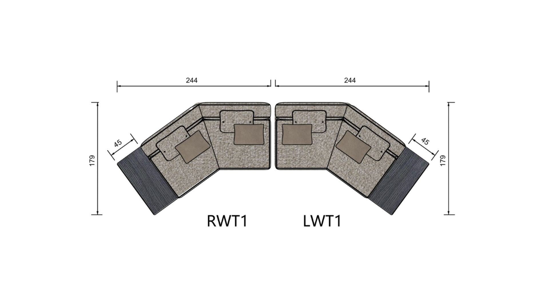 كنب مون- زاوية مائلة مع طاولة جانبية